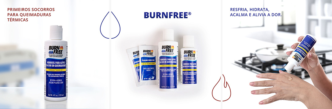 O BurnFree® é um Hidrogel para primeiros socorros com aplicação voltada a áreas queimadas do corpo. Seu uso interrompe o processo de queima, alivia as dores do acidentado e protege as enervações atingidas.